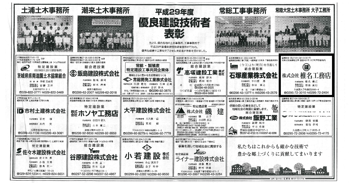 今後も公共工事の担い手として品質向上に真摯な努力を積み重ね、地域社会への貢献に努めてまいります。